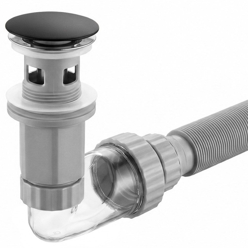 Zvolte funkční řešení do své koupelny díky odtokové sadě se sifonem a zátkou Click-Clack. Tento produkt spojuje estetické provedení s inovativními servisními prvky. Konstrukce byla navržena tak, aby co nejvíce usnadnila montáž i průběžné čištění odpadu.Univerzální použití – sada je přizpůsobena k montáži jak s umyvadly vybavenými přepadem, tak s modely bez přepadu, což z ní činí všestrannou volbu do každé koupelny.Zátka Click-Clack s vyjímatelnou vložkou – mechanismus typu “push-open” umožňuje zavírání a otevírání odpadu jediným stisknutím. Klíčovou výhodou je možnost úplného vyjmutí horní vložky zátky, což umožňuje bleskově odstranit vlasy a usazeniny “shora”, bez nutnosti demontáže sifonu pod umyvadlem.Průhledné inspekční koleno – spodní prvek sifonu je vyroben z transparentního materiálu. To umožňuje rychlou kontrolu průchodnosti a usnadňuje nalezení cenných drobností, jako jsou ztracené šperky, které do něj omylem spadnou. Úhlová konstrukce 90° navíc šetří místo ve skříňce.Blokace nepříjemných pachů – konstrukce sifonu účinně zadržuje vodu a vytváří bariéru, která zabraňuje pronikání nepříjemných pachů z kanalizace do místnosti.Flexibilní harmoniková trubka – odpad má nastavitelnou délku s možností prodloužení až do 1 metru. Ohebná konstrukce usnadňuje připojení umyvadla ke kanalizaci v netypických uspořádáních a eliminuje problém montážních posunů.Odolné materiály – zátka je opatřena trvanlivou povrchovou úpravou, odolnou proti korozi a snadnou na čištění. Tělo sifonu i trubka jsou vyrobeny z odolného plastu a gumová těsnění zaručují úplnou těsnost spojů.Díky vyjímatelnému košíčku zátky a průhledné konstrukci zabere běžná údržba umyvadlového sifonu Flow jen chvilku a univerzální přípojky pasují na standardní umyvadla.