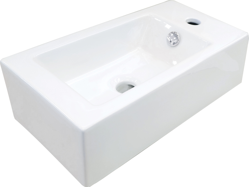 Ta niewielka, prostokątna umywalka to doskonały wybór do małych łazienek, toalet gościnnych czy wnętrz o nietypowym układzie. Jej kompaktowe wymiary pozwalają zaoszczędzić miejsce, nie rezygnując z wygody użytkowania. Wbudowany otwór na baterię pomaga optymalnie wykorzystać dostępne miejsce. Możliwość instalacji nablatowej lub ściennej daje swobodę aranżacyjną i pozwala dopasować produkt do indywidualnych potrzeb. Minimalistyczna forma, gładka powierzchnia i klasyczna biel sprawiają, że umywalka doskonale wpisuje się w niewielkie lecz funkcjonalne wnętrza. Jest to model montowany z baterią po prawej stronie.