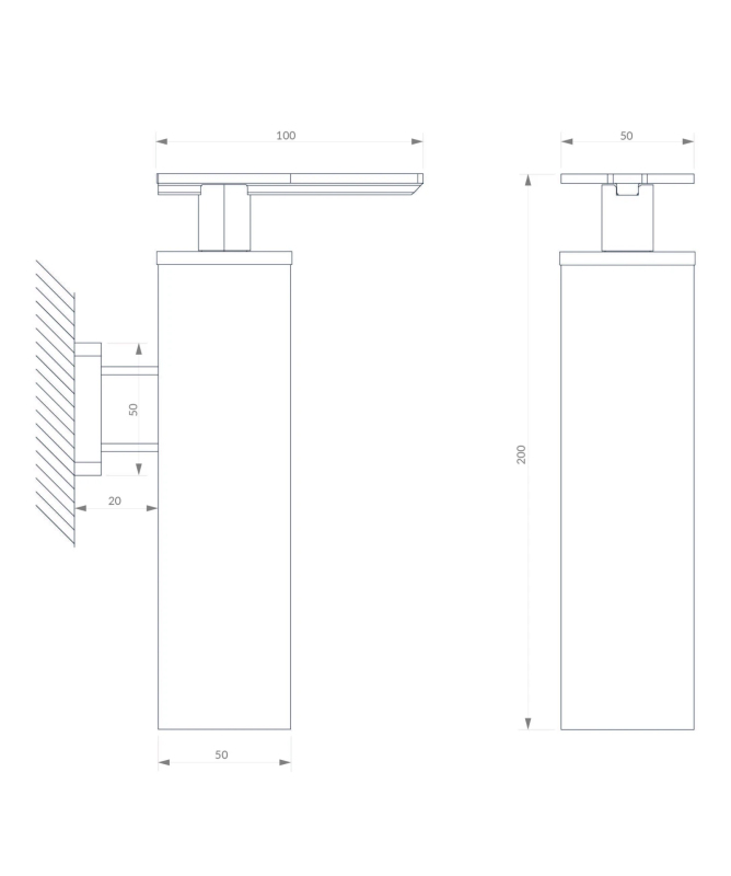 - šířka: 5 cm, výška: 20 cm, vzdálenost od zdi: 13 cm
