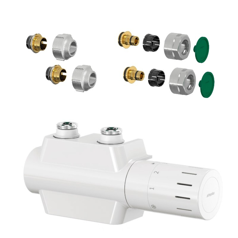 - 2 kusy svěrných šroubení pro plastové trubky a trubky AL - PEX, s maticí vel. kl. 27, O-kroužek, svěrací kroužek a oddělovací těsnění. Uvedená šroubení lze použít také k připojovacím šroubením pro tělesa VK.