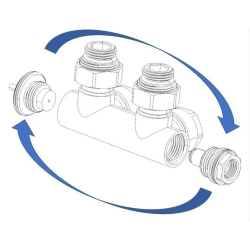 Ventil je určen pro připojení radiátorů na rozvody TUV s vývodem ze zdi. Nelze kombinovat s elektrickou topnou tyčí.