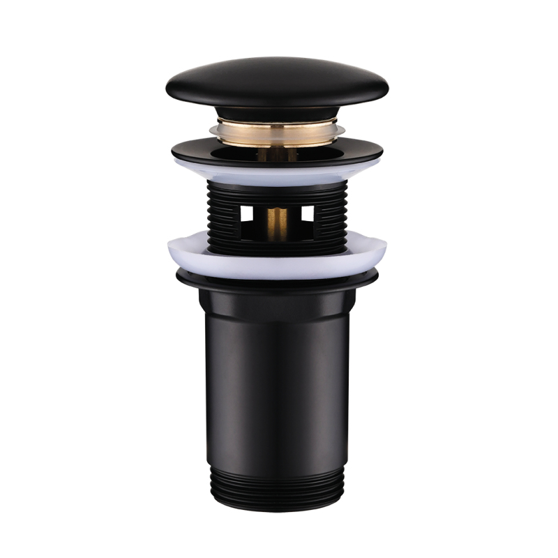 Základna má stejnou barvu jako zátka, což vytváří jednotný a elegantní vzhled a dokonale ladí s povrchovou úpravou umyvadla. Plochý, moderní tvar zátky kombinuje estetický vzhled s praktičností. Systém click-clack umožňuje snadné a rychlé uzavření odtoku vody jediným kliknutím, bez nutnosti použití jakýchkoli dalších mechanismů.