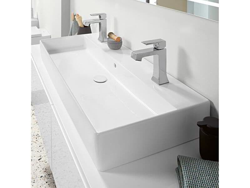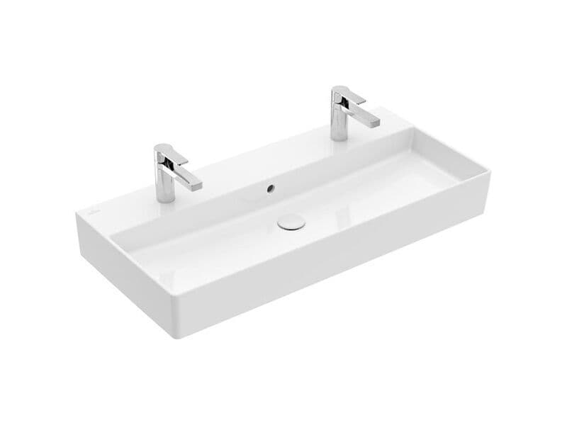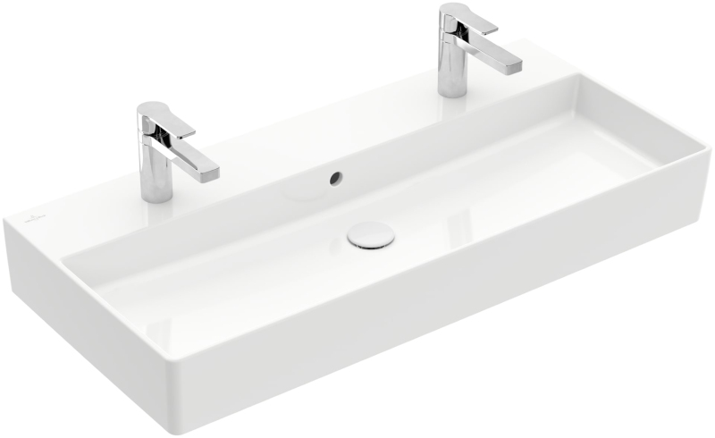 V & B Memento 2.0 - Dvojumyvadlo nábytkové 100x47 cm, s přepadem, 2 otvory pro baterii, CeramicPlus, alpská bílá 4A221LR1