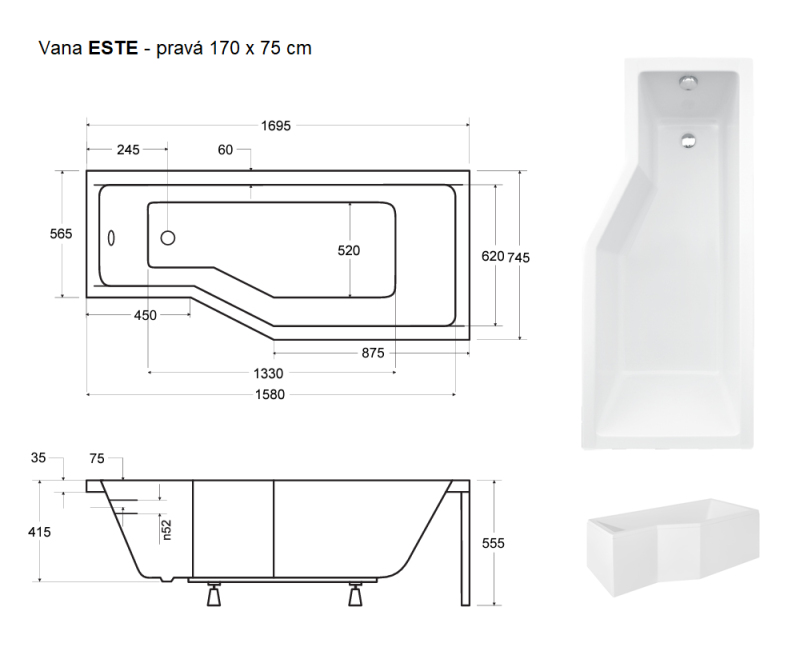 Elegantní a přitom velmi praktický design vany, která je převážně určena do malých koupelen.