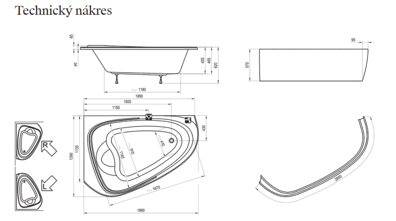 - doplňky k dokoupení: podpora, čelní panel, vanový odtokový komplet