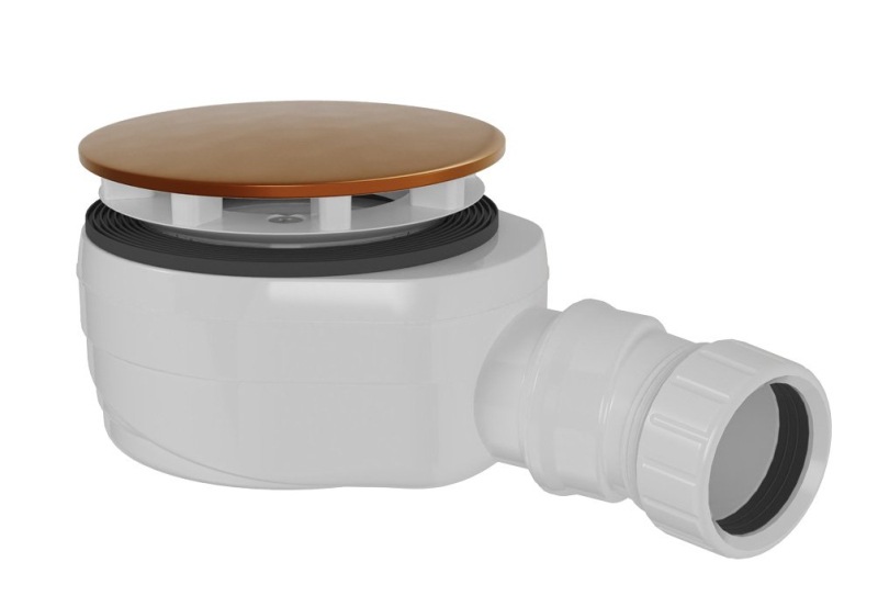 Vaničkový sifon, průměr 90mm, DN40, nízký, krytka měď mat