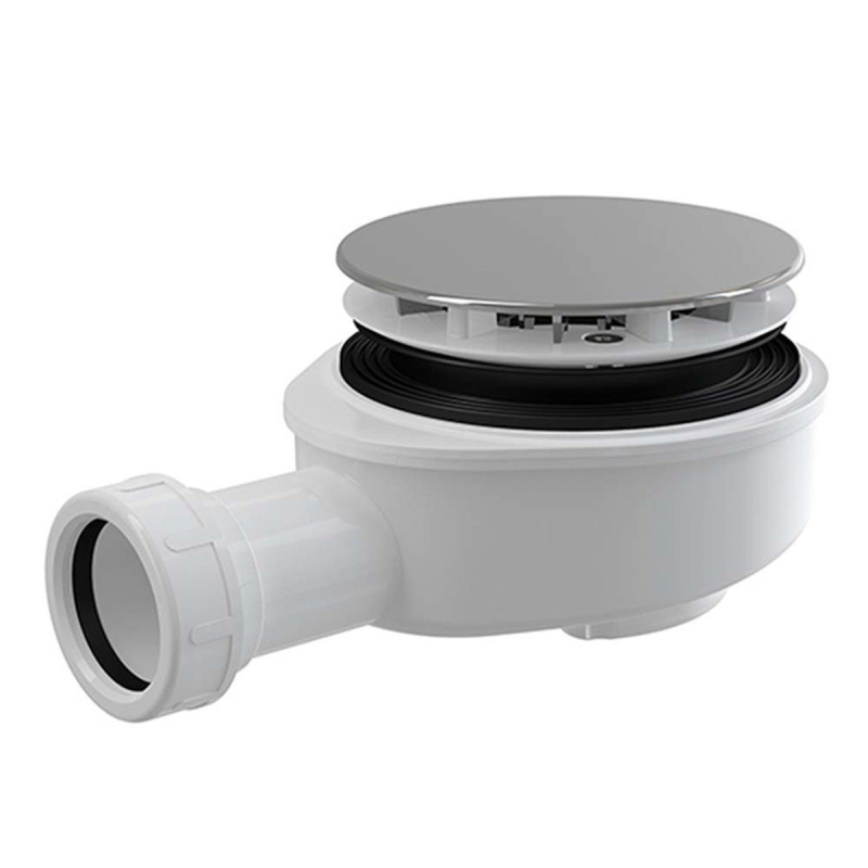 Snížený vaničkový sifon s plastovou chromovanou krytkou pro vaničky s průměrem odtokového otvoru 90 mm.