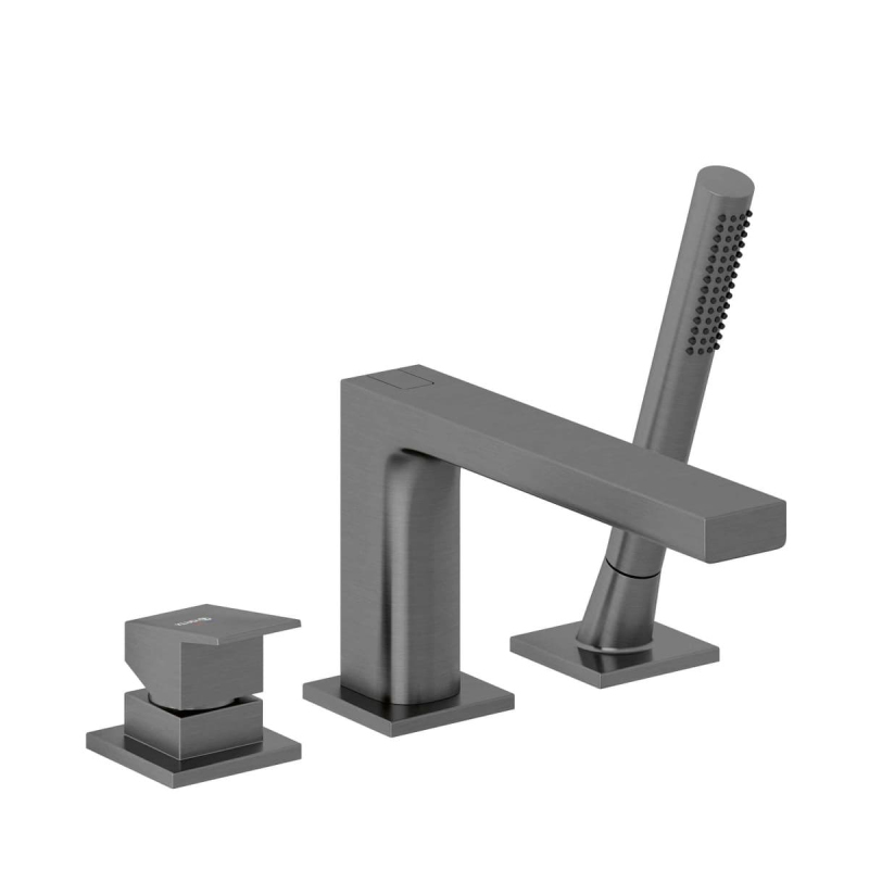 Páková na hranu vany vanová baterie se sprchovým setem v barevném provedení kartáčovaný gunmetal. S matným povrchem.