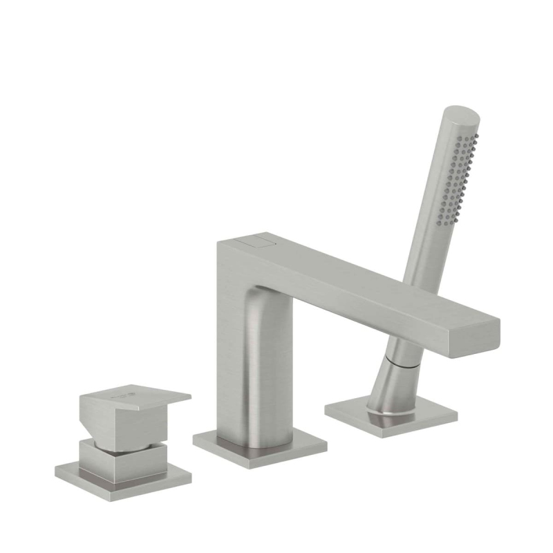 Páková na hranu vany vanová baterie se sprchovým setem v barevném provedení kartáčovaný nikl. S matným povrchem.