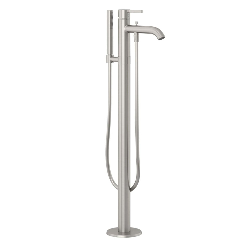 Páková podlahová vanová baterie se sprchovým setem v barevném provedení kartáčovaný nikl. S matným povrchem.