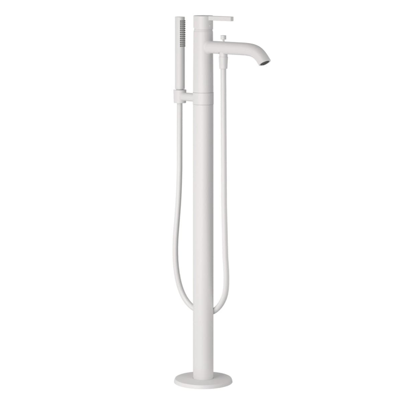 Páková podlahová vanová baterie se sprchovým setem v barevném provedení matná bílá. S matným povrchem.