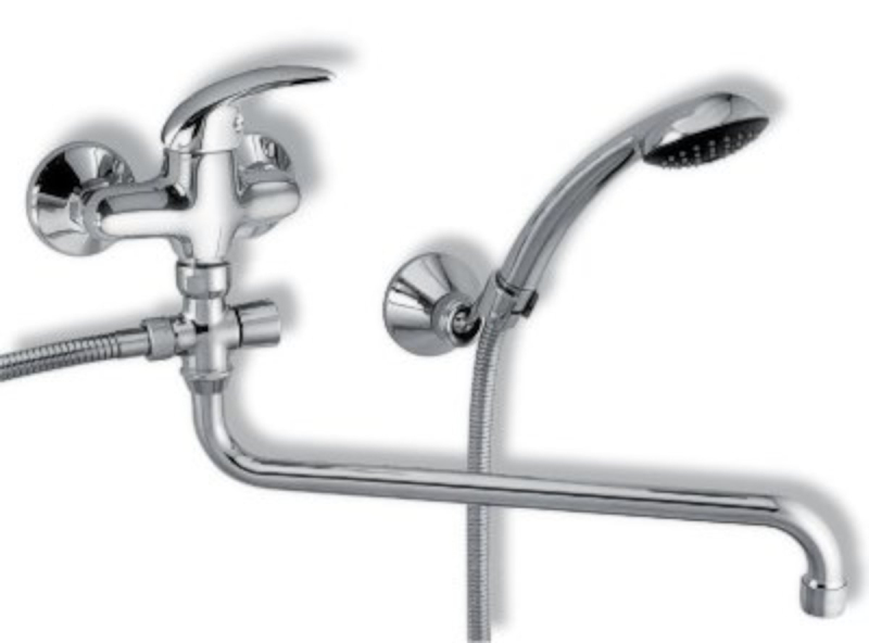 Páková nástěnná vanová baterie bez sprchového setu. V oblém designu. V chromovém provedení. Rozteč baterie 150 mm.