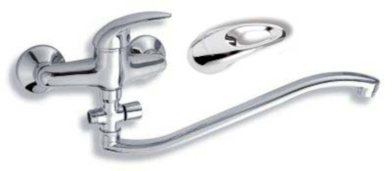 Páková nástěnná vanová baterie bez sprchového setu. V oblém designu. V chromovém provedení. Rozteč baterie 150 mm.