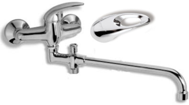 Páková nástěnná vanová baterie bez sprchového setu. V oblém designu. V chromovém provedení. Rozteč baterie 150 mm.