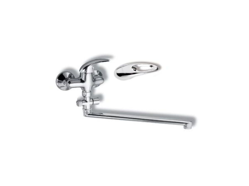 Páková nástěnná vanová baterie bez sprchového setu. V chromovém provedení. Rozteč baterie 150 mm.