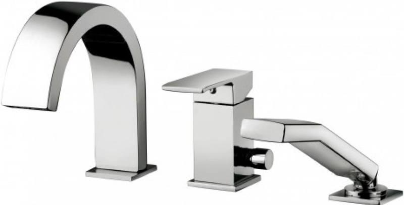 Páková vanová baterie na hranu vany se sprchovým setem v chromovém provedení. V barevném provedení lesk.