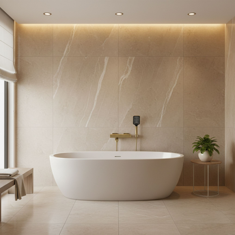 Vytvořte si v koupelně relaxační zónu s jedinečným stylem – zvolte nástěnnou vanovou baterii Rea Arlo v provedení kartáčované zlato. Tento model je esencí moderního designu: geometrické tělo a ploché plochy dokonale ladí s umyvadlovou armaturou ze stejné série. Kompletní sprchový set zajišťuje funkčnost i vizuální jednotu interiéru.Moderní design – pro sérii Arlo typická plochá výpusť a čisté linie těla dodávají baterii minimalistický a elegantní vzhled.Barva kartáčované zlato – ušlechtilá matná povrchová úprava, která je efektní i praktická, protože pomáhá maskovat otisky prstů.Kompletní sprchový set – součástí je baterie, hadice a stylová obdélníková ruční sprcha s nástěnným držákem, vše jako sladěný celek.Ruční sprcha se systémem Anti-Calc – moderní sprcha se silikonovými tryskami, které brání usazování vodního kamene a usnadňují čištění.Keramická kartuše – „srdce“ baterie, které zajišťuje plynulou a přesnou regulaci proudu i teploty po dlouhou dobu.Perlátor – integrovaná koncovka výtoku provzdušňuje vodu, takže je proud měkčí a úspornější.Vanová baterie Rea Arlo ve zlaté barvě je skvělou volbou pro ty, kteří chtějí spojit estetiku s komfortem používání. Její geometrická forma a teplý zlatý odstín tvoří výrazný akcent v koupelně a perfektně ladí s moderními obklady a keramikou. Pevné provedení a důraz na detail zaručují spokojenost při každé koupeli.