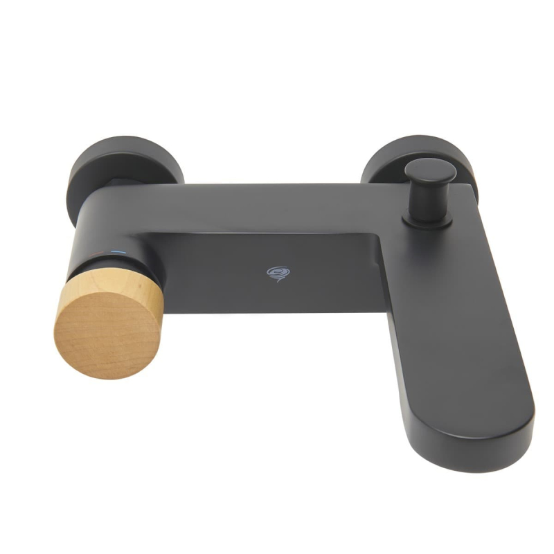 Páková nástěnná vanová baterie bez sprchového setu Páka světlé dřevo. Rozteč baterie 150 mm. S matným povrchem.