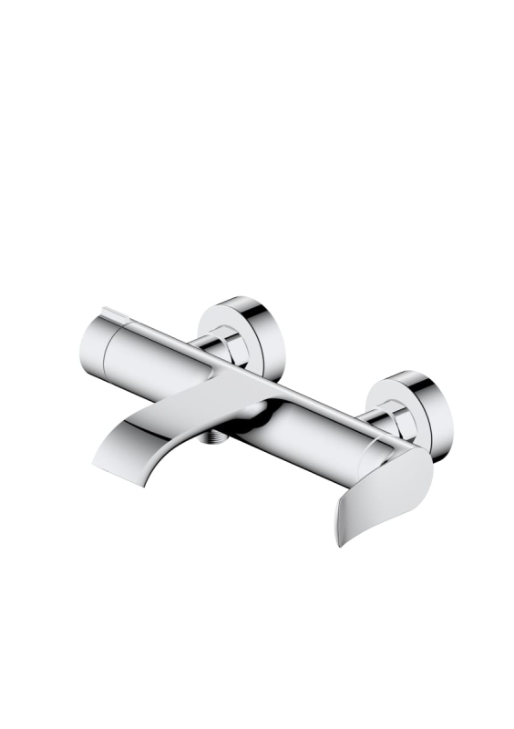 Páková nástěnná vanová baterie bez sprchového setu v chromovém provedení. Rozteč baterie 150 mm. V barevném provedení lesk.