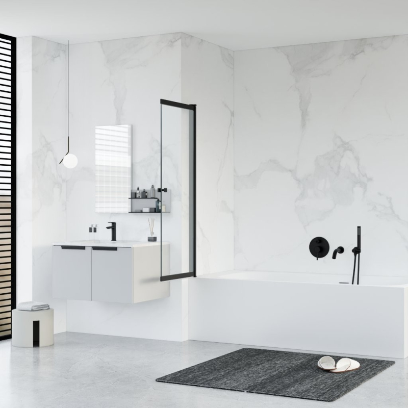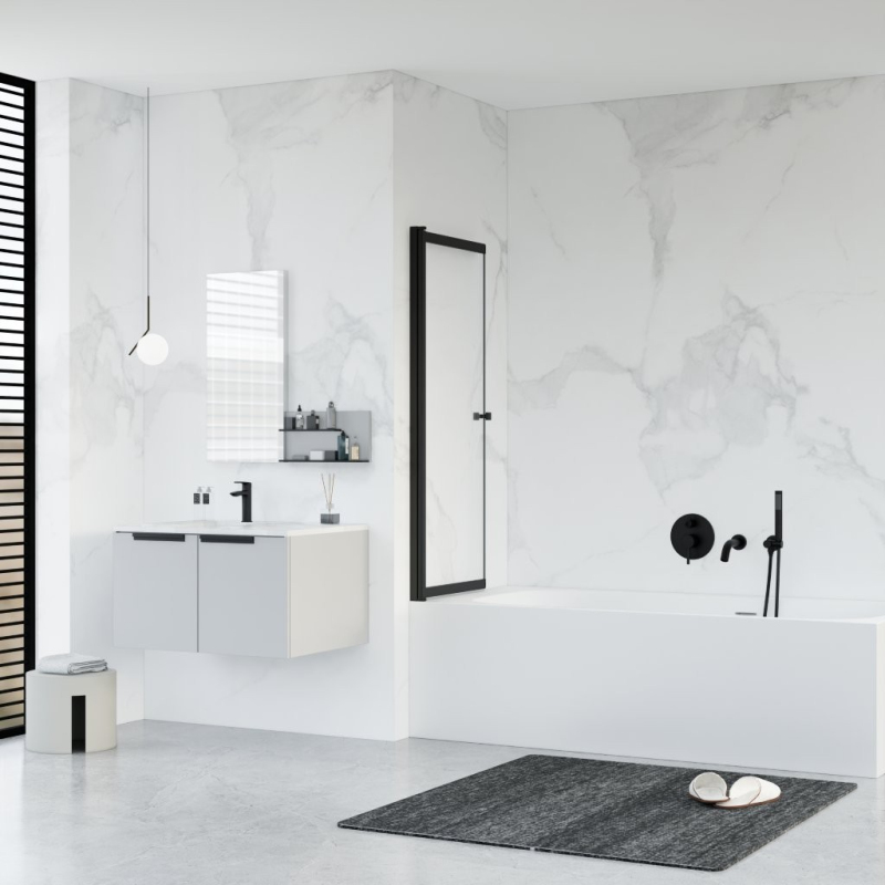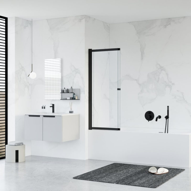 Vanová zástěna EASY SLIDE BLACK NEW vyniká vysoce kvalitním zpracováním a spolehlivou funkčností všech součástí a materiálů. Vanová zástěna lze sklopit ke stěně a to na obě strany.