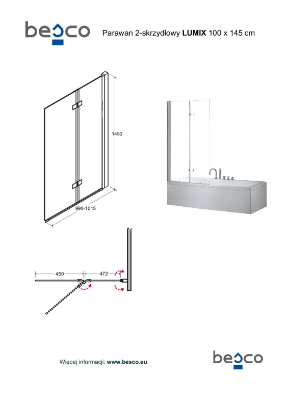 - Rozměry: 100 × 145 cm, montážní rozměr 99 - 101,5 cm