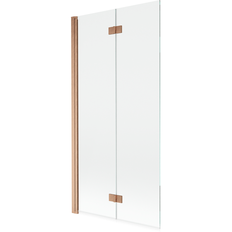 Specifikace produktu: Šířka: 90 cm Výška: 150 cm Typ: 2křídlé Strana montáže: Levá Typ: Pohyblivé/Skládací Typ skla: Tvrzené Barva skla: Průhledná Tloušťka skla: 6 mm Povrchová úprava: Kartáčovaná měď Snadno čistitelný povlak Nastavitelná šířka Mosazné panty v jedné rovině se sklem Elastomerová těsnění pro odvod vody