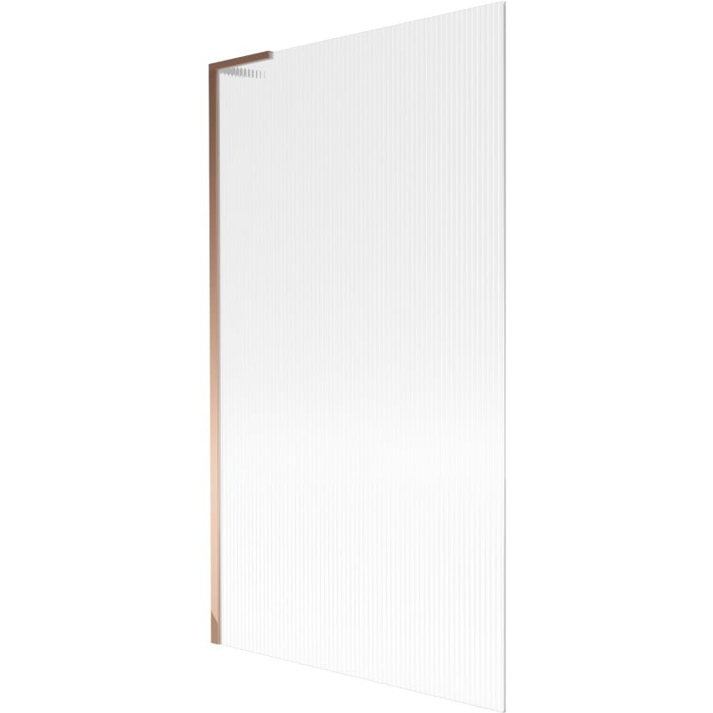 Technické údaje: Šířka: 100 cm Výška: 150 cm Typ: 1-křídlé Montáž: Univerzální Typ: Pevné Typ skla: Tvrzené Barva skla: Pruhy Tloušťka skla: 6 mm Povrchová úprava: Růžové zlato Úhlový stabilizátor L: Nerezová ocel Povrchová úprava pro snadné čištění Vyrovnání nerovností stěny