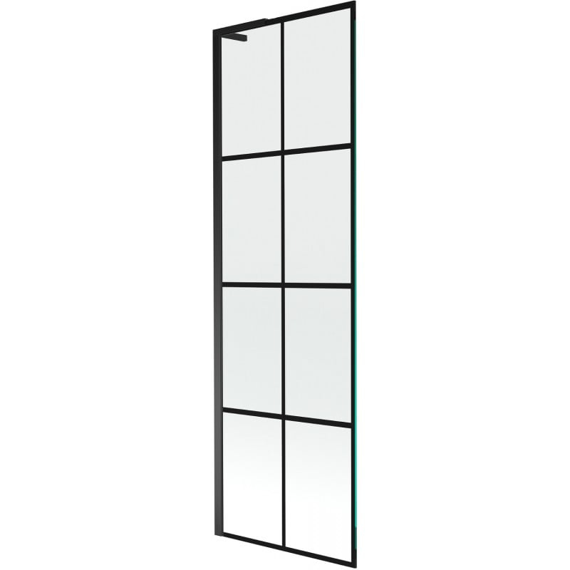 Technické údaje: Šířka: 60 cm Výška: 150 cm Typ: 1-křídlé Montáž: Univerzální Typ: Pevné Typ skla: Tvrzené Barva skla: Černá mřížka Tloušťka skla: 6 mm Povrchová úprava: Černá Úhlový stabilizátor L: Nerezová ocel Povlak pro snadné čištění Vyrovnání nerovností stěny