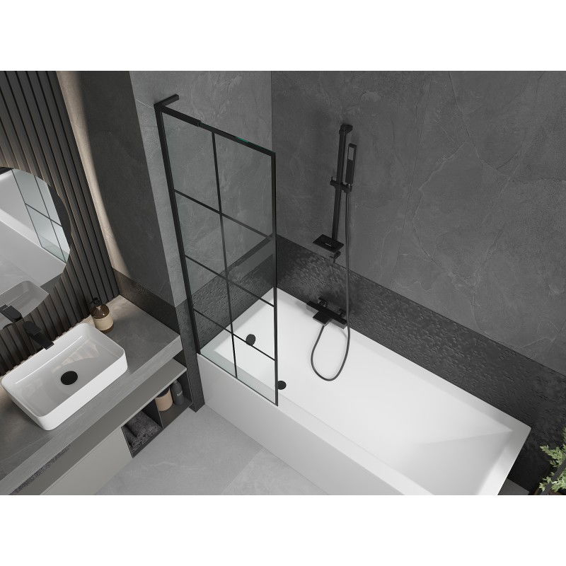 Vanová zástěna Mexen Next L s jedním křídlem 60 x 150 cm, černý kostkovaný vzor, černá - 895-060-000-03-77-70