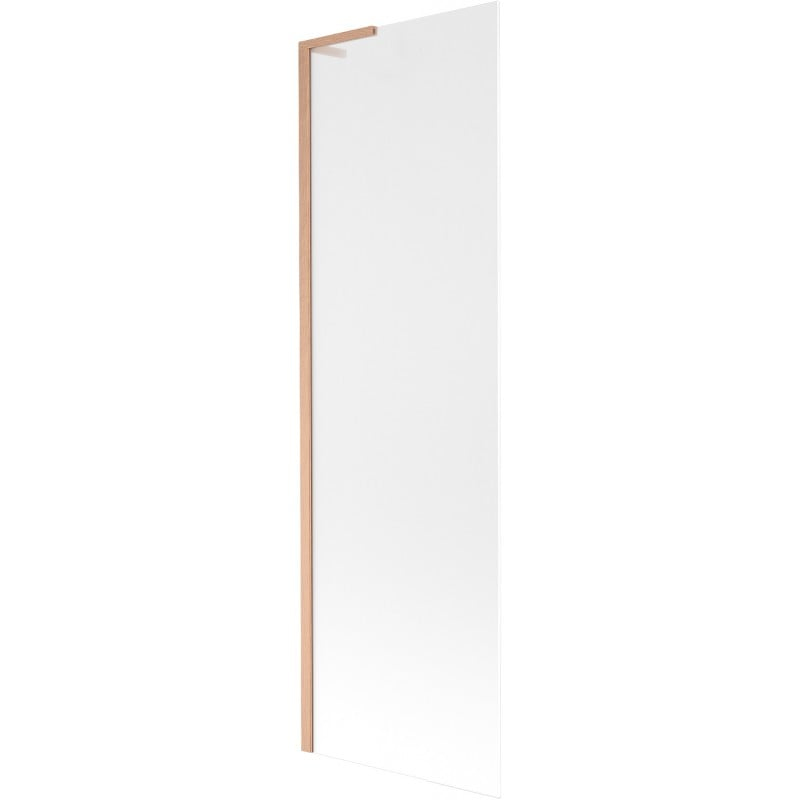 Technické údaje: Šířka: 60 cm Výška: 150 cm Typ: 1-křídlé Montáž: Univerzální Typ: Pevné Typ skla: Tvrzené Barva skla: Mléčné Tloušťka skla: 6 mm Povrchová úprava: Kartáčovaná měď Úhlový stabilizátor L: Nerezová ocel Povlak pro snadné čištění Vyrovnání nerovností stěny