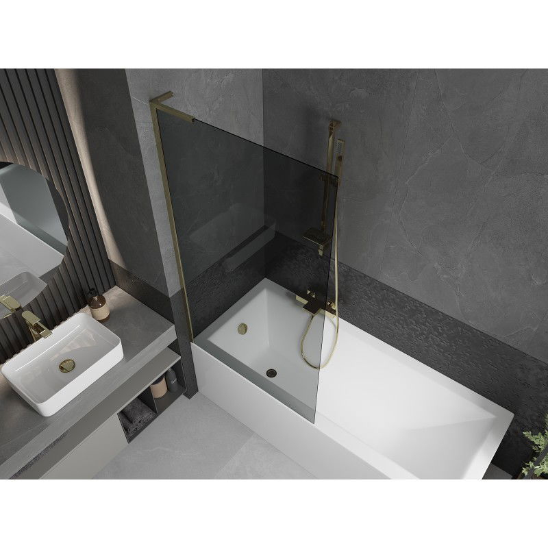 Vanová zástěna Mexen Next L s jedním křídlem 90 x 150 cm, grafitová, zlatá - 895-090-000-03-40-50