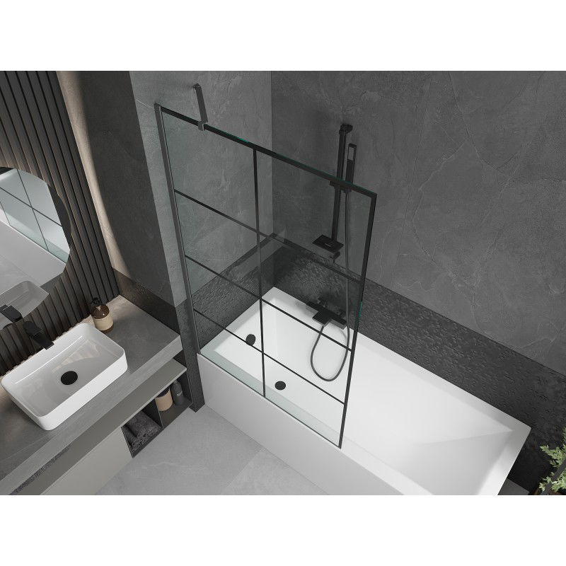 Vanová zástěna Mexen Next s jedním křídlem 100 x 150 cm, černá mřížka, stříbrná - 895-100-000-00-77-95
