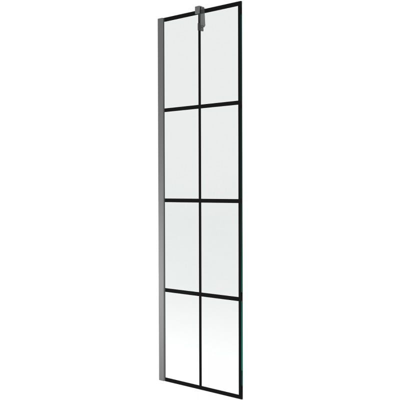 Technické údaje: Šířka: 50 cm Výška: 150 cm Typ: 1-křídlé Montáž: Univerzální Typ: Pevné Typ skla: Tvrzené Barva skla: Černá mřížka Tloušťka skla: 6 mm Povrchová úprava: Stříbrná kovová Povlak pro snadné čištění Vyrovnání nerovností stěn