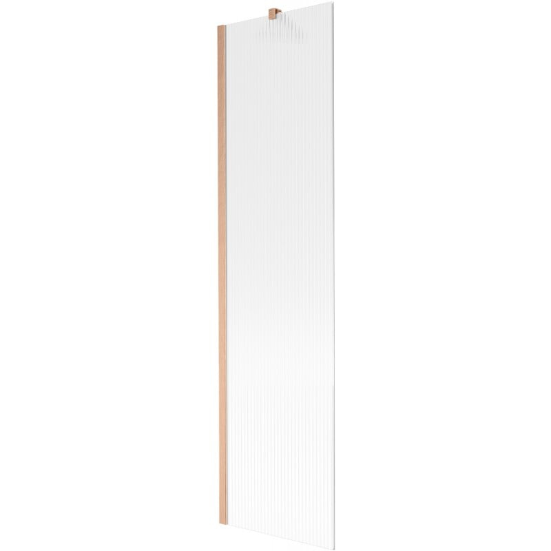 Technické údaje: Šířka: 50 cm Výška: 150 cm Typ: 1-křídlé Montáž: Univerzální Typ: Pevné Typ skla: Tvrzené Barva skla: Pruhy Tloušťka skla: 6 mm Povrchová úprava: Kartáčovaná měď Povlak pro snadné čištění Vyrovnání nerovností stěn