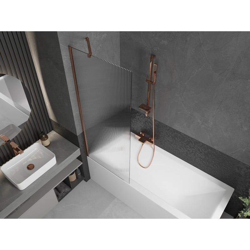 Vanová zástěna Mexen Next s jedním křídlem 70 x 150 cm, pruhy, růžové zlato - 895-070-000-00-09-60
