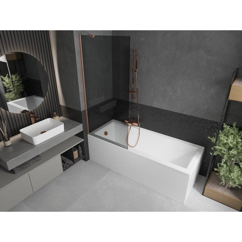 Vanová zástěna Mexen Next s jedním křídlem 80 x 150 cm, grafit, kartáčovaná měď - 895-080-000-00-40-65