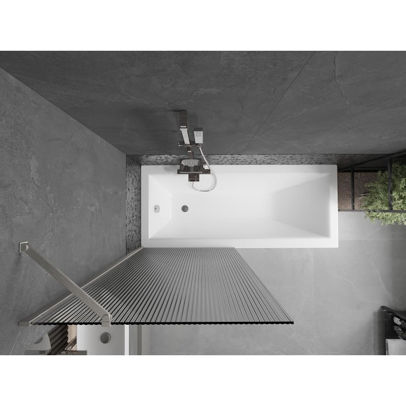 Technické údaje: Šířka: 80 cm Výška: 150 cm Typ: 1-křídlé Montáž: Univerzální Typ: Pevné Typ skla: Tvrzené Barva skla: Pruhy Tloušťka skla: 6 mm Povrchová úprava: Kartáčovaný nikl Povlak pro snadné čištění Vyrovnání nerovností stěn