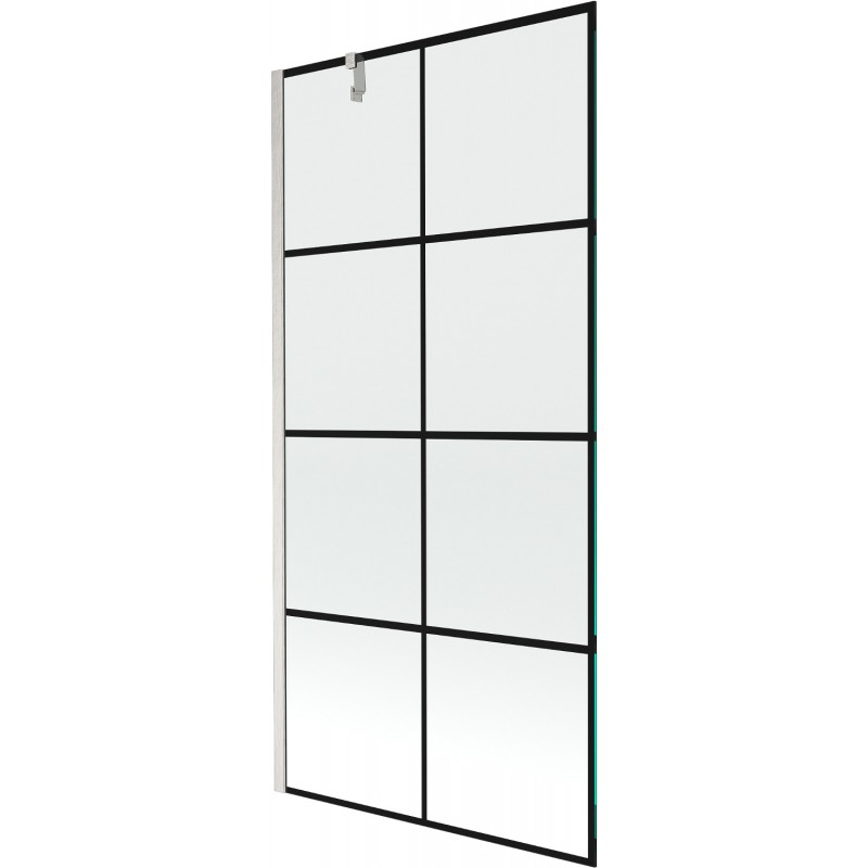 Technické údaje: Šířka: 90 cm Výška: 150 cm Typ: 1-křídlé Montáž: Univerzální Typ: Pevné Typ skla: Tvrzené Barva skla: Černá mřížka Tloušťka skla: 6 mm Povrchová úprava: Kartáčovaný nikl Povlak pro snadné čištění Vyrovnání nerovností stěn