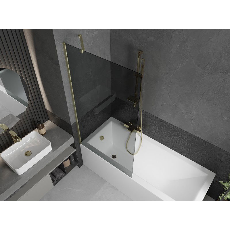 Vanová zástěna Mexen Next s jedním křídlem 90 x 150 cm, grafit, kartáčované zlato - 895-090-000-00-40-55