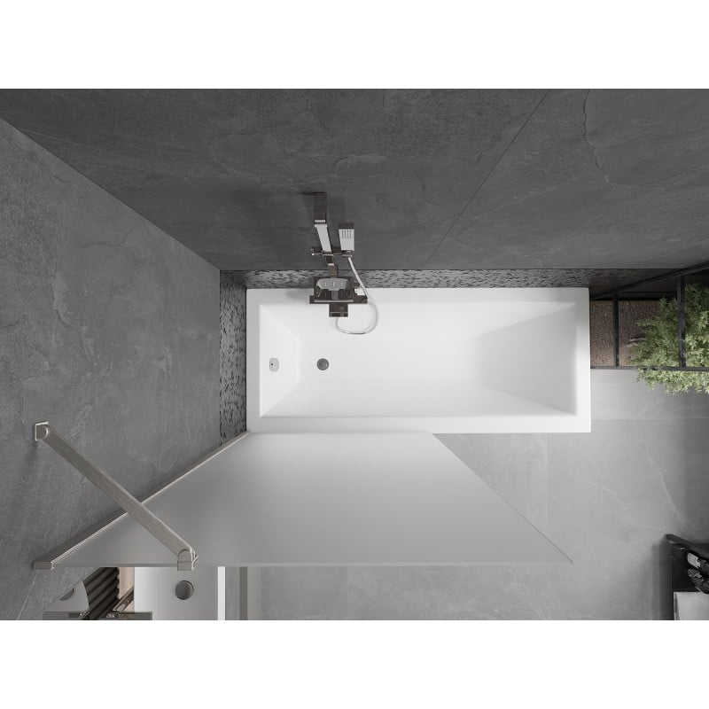 Technické údaje: Šířka: 90 cm Výška: 150 cm Typ: 1-křídlé Montáž: Univerzální Typ: Pevné Typ skla: Tvrzené Barva skla: Mléčné Tloušťka skla: 6 mm Povrchová úprava: Kartáčovaný nikl Povlak pro snadné čištění Vyrovnání nerovností stěn