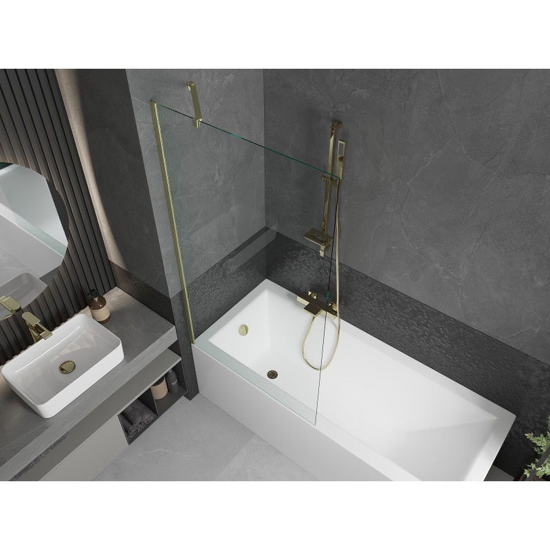 Vanová zástěna Mexen Next s jedním křídlem 90 x 150 cm, průhledná, kartáčované zlato - 895-090-000-00-00-55