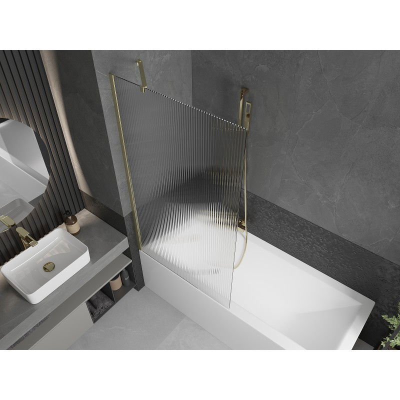 Vanová zástěna Mexen Next s jedním křídlem 90 x 150 cm, pruhy, kartáčované zlato - 895-090-000-00-09-55
