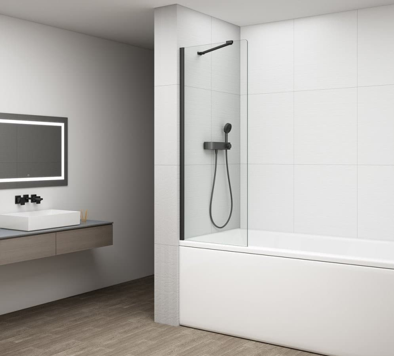 POUZE SKLO, nutné přiobjednat stěnový profil a nastavitelnou rohovou vzpěru. Vanová zástěna o rozměru 150x80 cm. Nelze otevřít - pevný systém. Jednodílná.