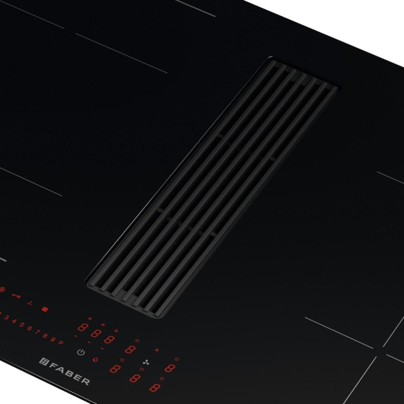 Indukční varná deska s integrovaným odsáváním Faber GALILEO LINEAR A83 (83 cm) v černém skle. Třída A+, výkon odsávání až 600 m³/h (BOOST), hlučnost od 49 dB. Dotykové slider ovládání, Bridge zóna, booster, možnost externího motoru. 5 let záruka po registraci.
