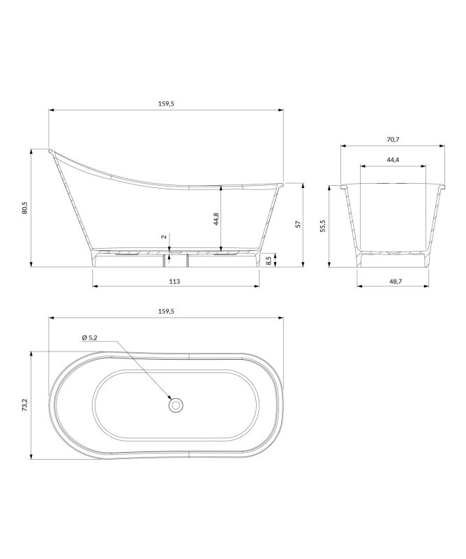 Omnires VENEZIA M+ volně stojící vana, 160 x 73 cm, bílý/černý lesk VENEZIA159BCP
