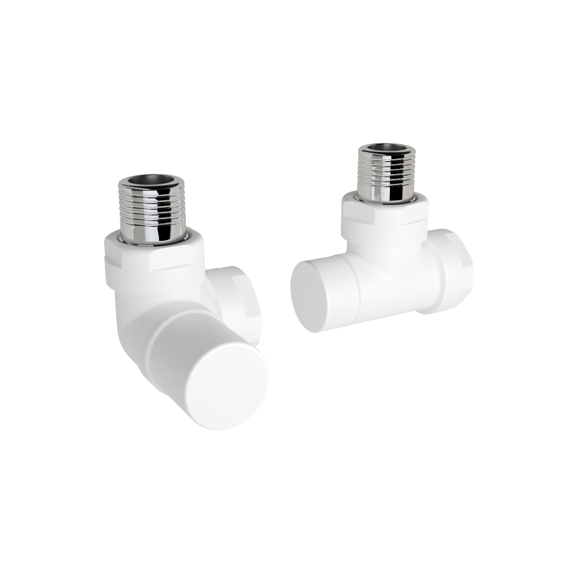 Ventil Zehnder úhlový rohový, rohové šroubení pro zpátečku 1/2", Set I, RAL 0556 white matt, Z-839659-0556