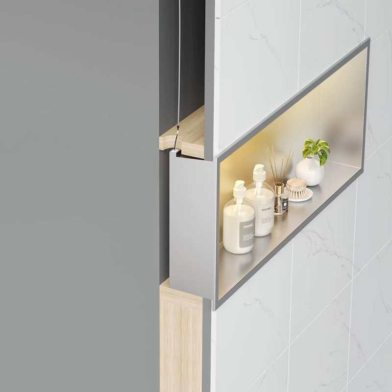 Vestavná koupelnová police s LED osvětlením je funkční a estetické řešení, které se skvěle hodí do sprchy, nad vanu nebo do jiné části koupelny. Vyrobena z vysoce kvalitní nerezové oceli Aisi 304, je odolná vůči vlhkosti, korozi a intenzivnímu používání, a tak si zachová svůj vzhled po mnoho let. Integrovaný Led pásek o výkonu 12 W a barvě světla 3000K vyzařuje teplé, příjemné světlo, které dodává interiéru atmosféru a zároveň zvyšuje pohodlí každodenního používání. Vestavná montáž vytváří minimalistický a moderní efekt a police poskytuje pohodlné místo pro uložení kosmetiky a koupelnových doplňků. Jedná se o praktický prvek koupelnového vybavení, který spojuje moderní design, odolnost a dodatečné osvětlení, jež podtrhuje eleganci aranžmá. Vestavěný transformátor umožňuje připojení k elektrické instalaci. Délka kabelu: 140 cm