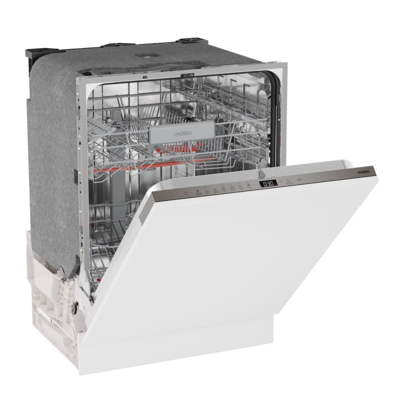Myčka nádobí vestavná Mora o šířce 59,8 cm, výšce 81,6 cm a hloubce 55,5 cm. V barevném provedení bílá, spotrebič má energetickou třídu D a napájecí napětí (V): 220-240.