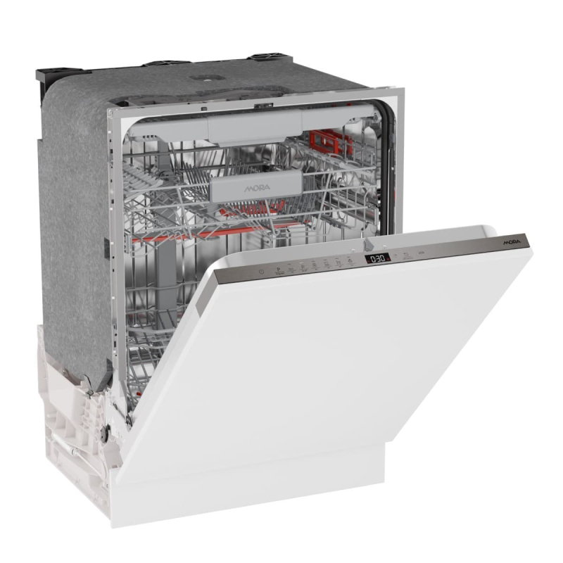 Myčka nádobí vestavná Mora o šířce 59,8 cm, výšce 81,6 cm a hloubce 55,5 cm. V barevném provedení bílá, spotrebič má energetickou třídu C a napájecí napětí (V): 220-240.