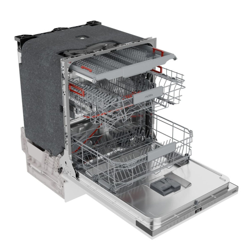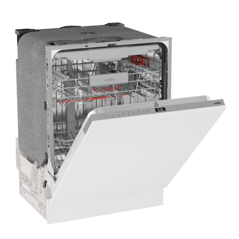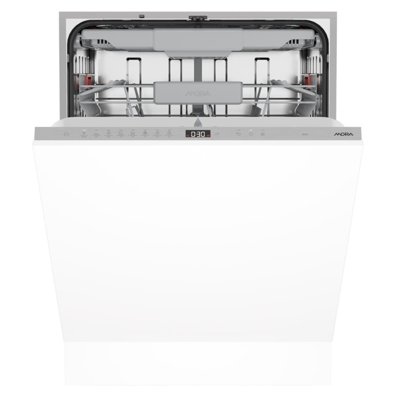 Myčka nádobí vestavná Mora o šířce 59,8 cm, výšce 81,6 cm a hloubce 55,5 cm. V barevném provedení bílá, spotrebič má energetickou třídu B a napájecí napětí (V): 220-240.